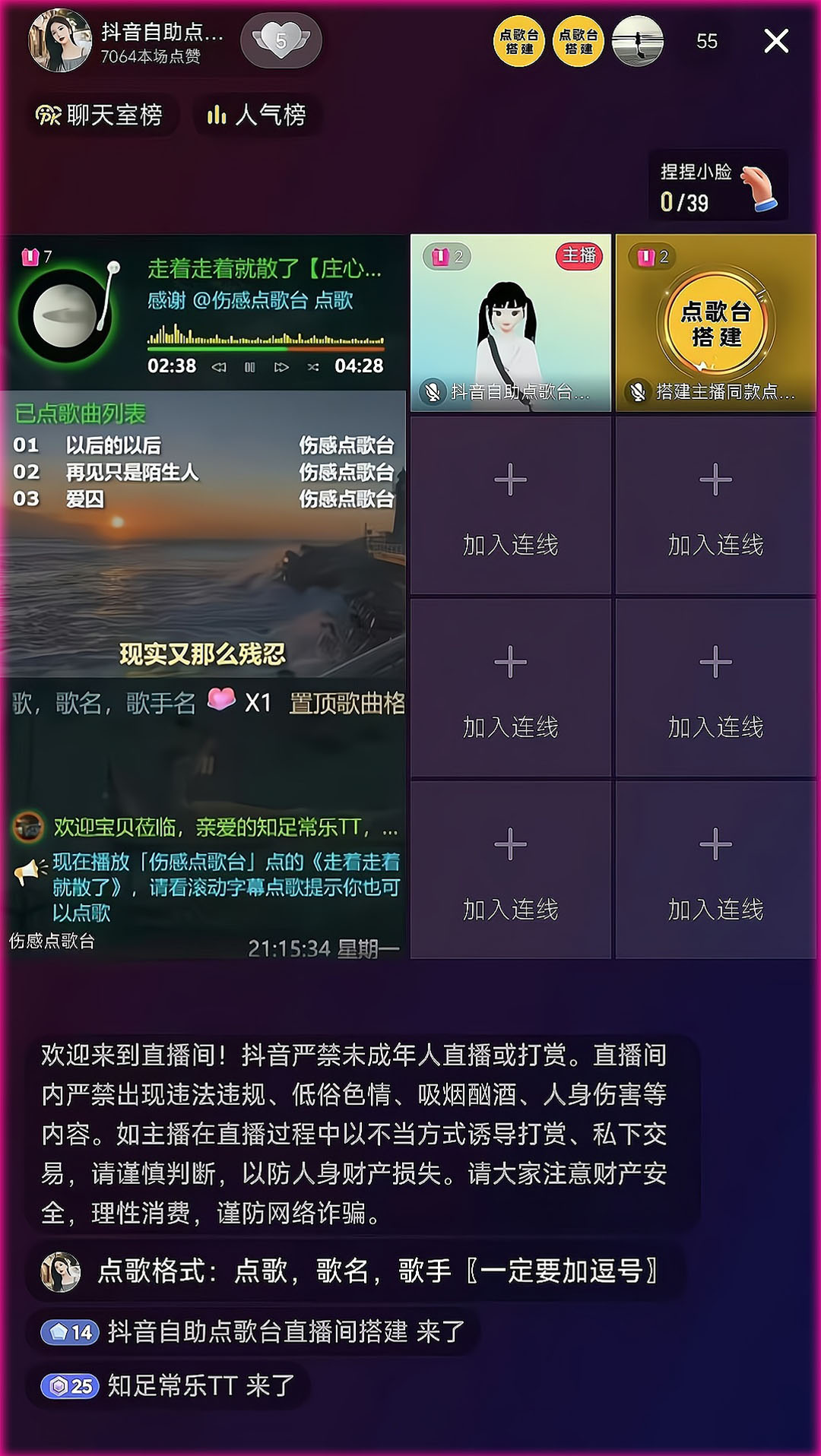 抖音直播项目:九宫格音乐厅聊天室自助点歌台直播间