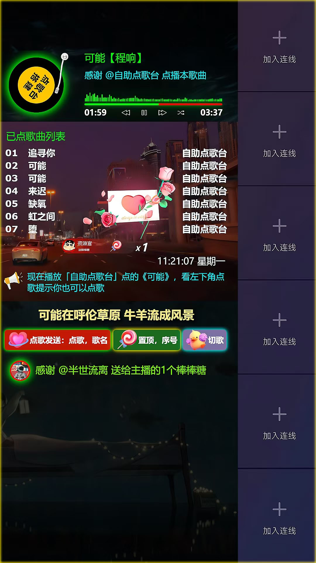 支持功能:支持礼物或者积分点歌、置顶、切歌、续听、删歌、超级切歌,支持语音播报、文字弹幕播报,支持冷场讲解、礼物感谢、关注感谢、点赞感谢、直播间进人欢迎、关键词智能回复,支持普通用户组、粉丝团用户组、VIP用户组、管理员用户组独立自定义积分,支持阿里云等几百种男生女生普通话及方言发音模型,支持震撼唯美礼物特效、头像飘屏、贵宾席座位等功能