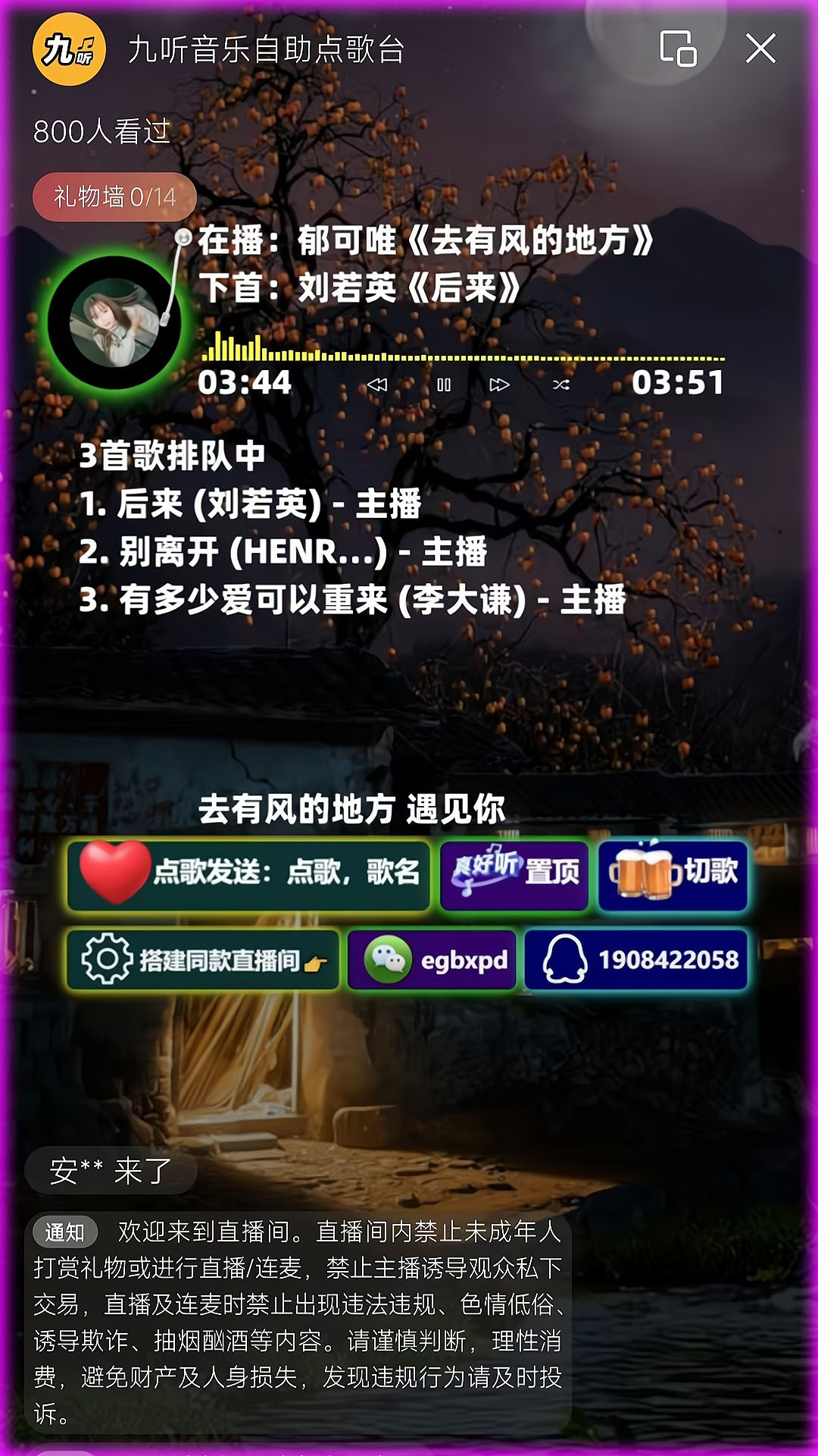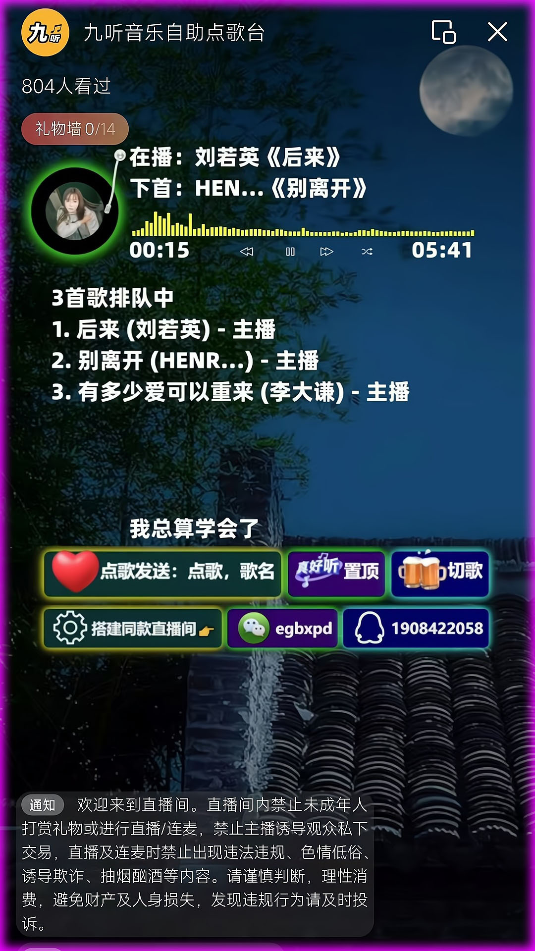 微信视频号直播项目:竖版自助点歌台直播间