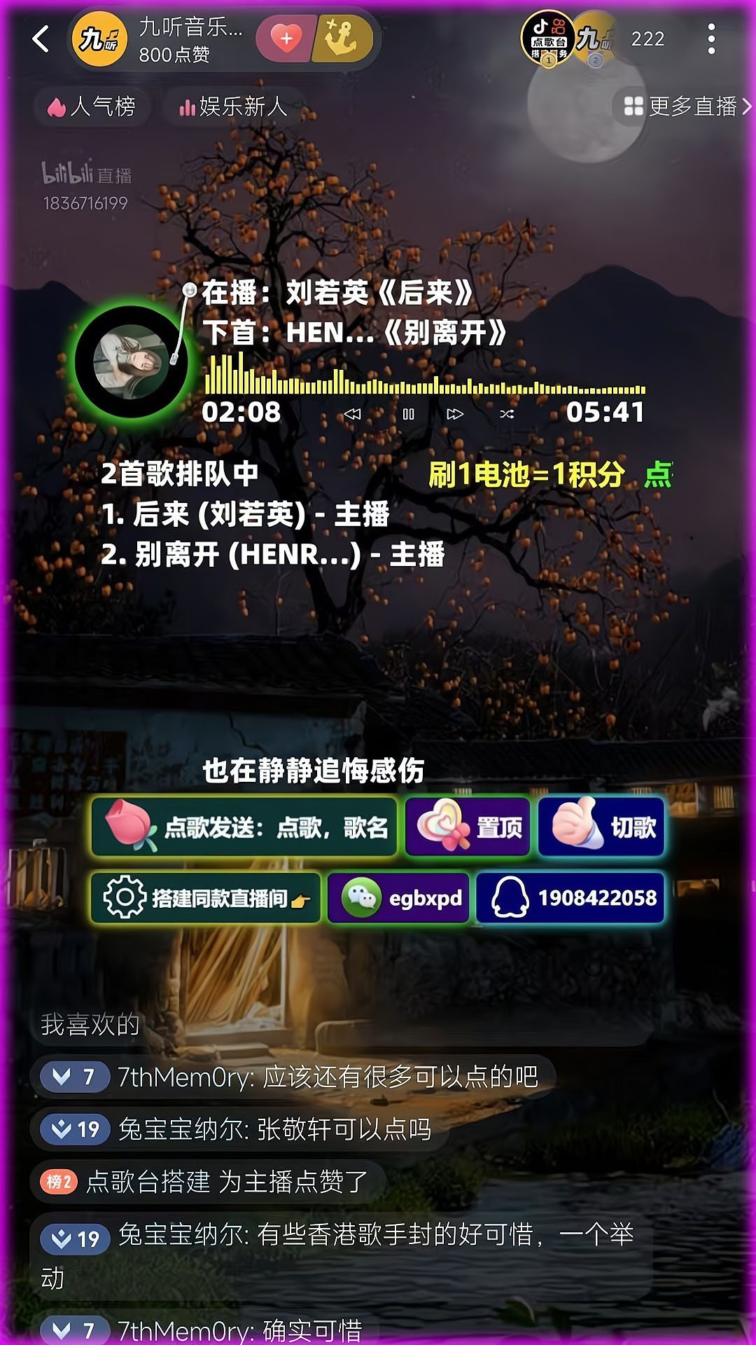 哔哩哔哩直播项目:竖版自助点歌台直播间