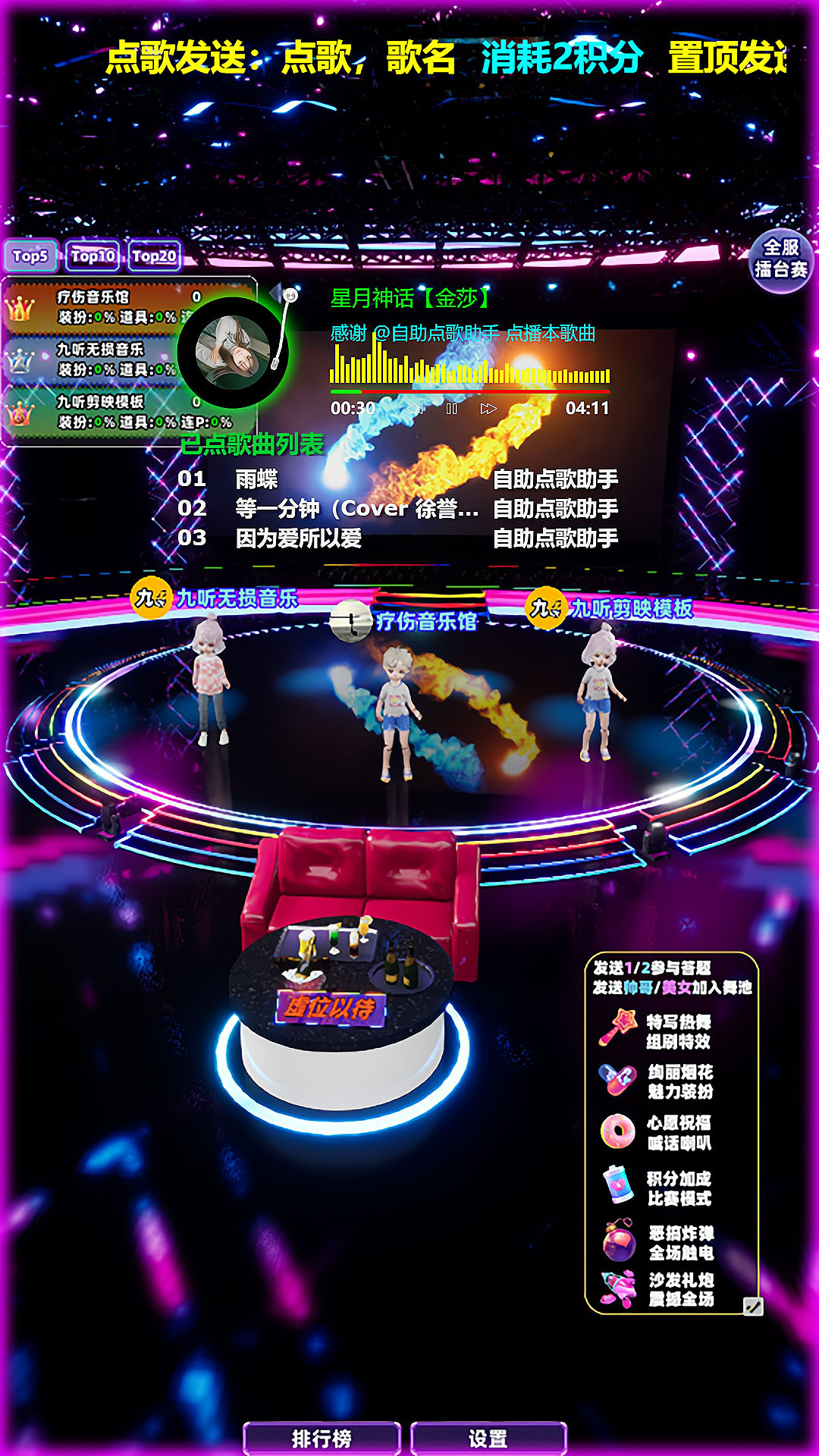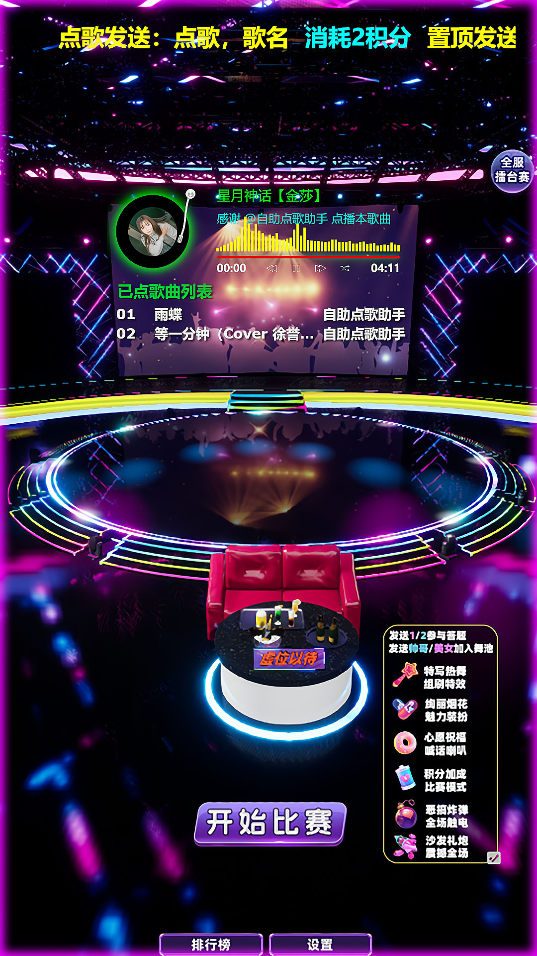 快手直播项目:弹幕游戏玩法《热舞之星》自助点歌台直播间