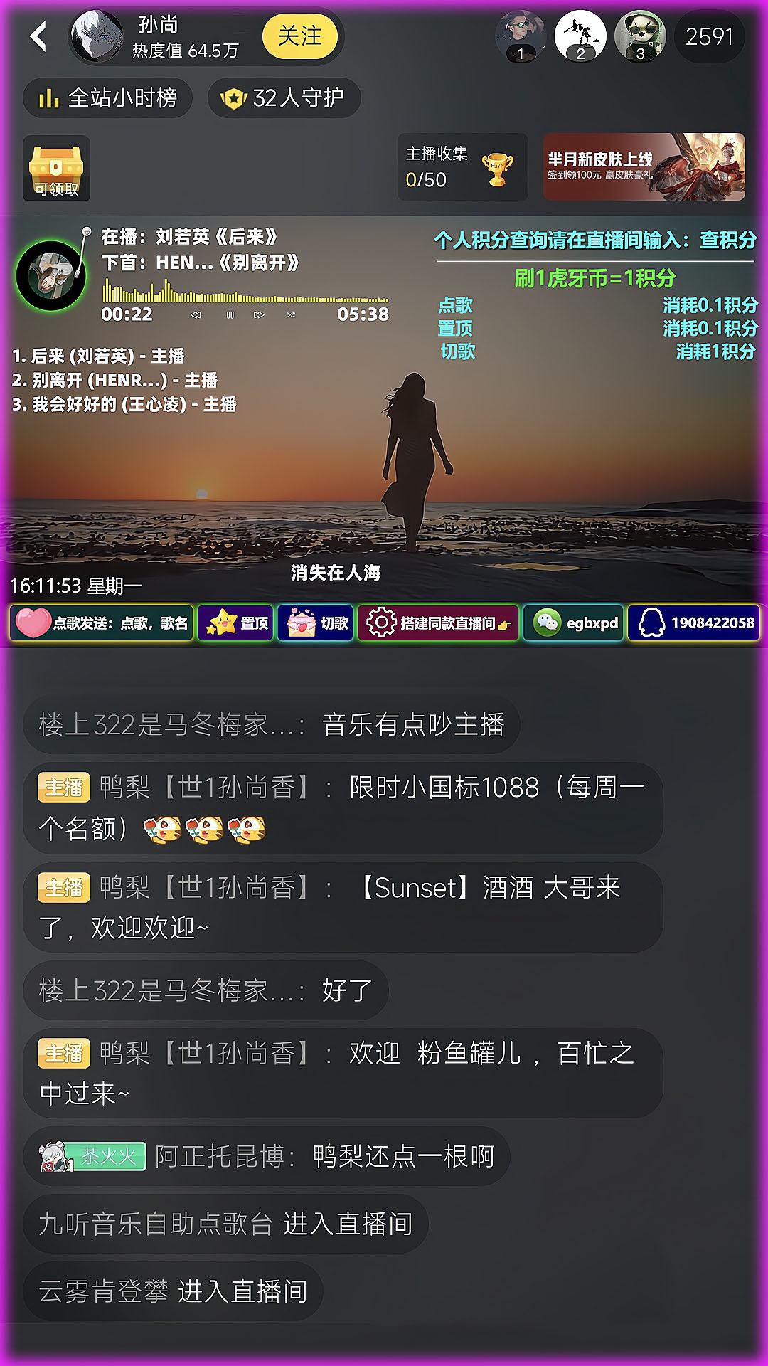 支持功能:支持礼物或者积分点歌、置顶、切歌、续听、删歌、超级切歌,支持语音播报、文字弹幕播报,支持冷场讲解、礼物感谢、关注感谢、点赞感谢、直播间进人欢迎、关键词智能回复,支持普通用户组、粉丝团用户组、VIP用户组、管理员用户组独立自定义积分,支持阿里云等几百种男生女生普通话及方言发音模型,支持震撼唯美礼物特效、头像飘屏、贵宾席座位等功能