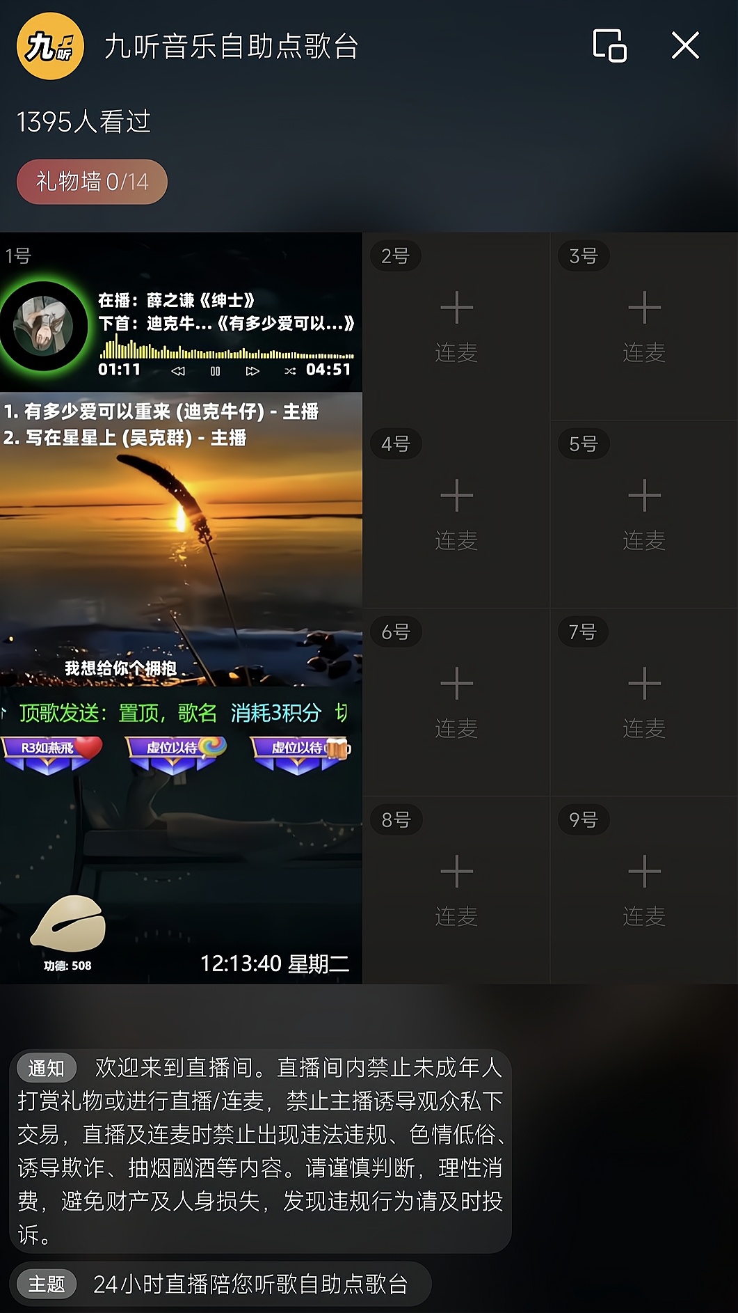 支持功能:支持礼物或者积分点歌、置顶、切歌、续听、删歌、超级切歌,支持语音播报、文字弹幕播报,支持冷场讲解、礼物感谢、关注感谢、点赞感谢、直播间进人欢迎、关键词智能回复,支持普通用户组、粉丝团用户组、VIP用户组、管理员用户组独立自定义积分,支持阿里云等几百种男生女生普通话及方言发音模型,支持震撼唯美礼物特效、头像飘屏、贵宾席座位等功能